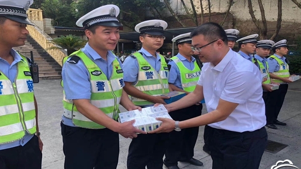 太平洋保險(xiǎn)公司代表告訴記者:“夏日炎炎,交巡警們依然頭頂烈日?qǐng)?jiān)持奮斗在一線,守護(hù)著我們的生命財(cái)產(chǎn)安全,非常辛苦,這次給他們送來(lái)防暑物資,希望能讓交警們感受到絲絲清涼?!?/p>