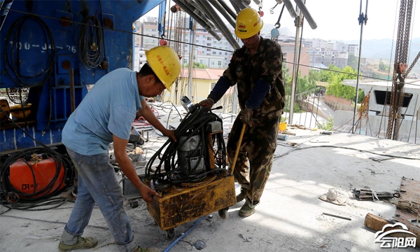 天氣雖然炎熱,但工程進度也得抓。為了應(yīng)對高溫天氣,施工單位采取了避開午間氣溫最高時段施工,工人們一般是上午6點出工,11點收工,下午6點再出工,一直到晚上11點收工。但如果遇著混凝土澆筑,就得連續(xù)作業(yè)20多個小時。