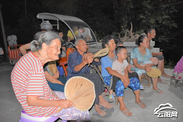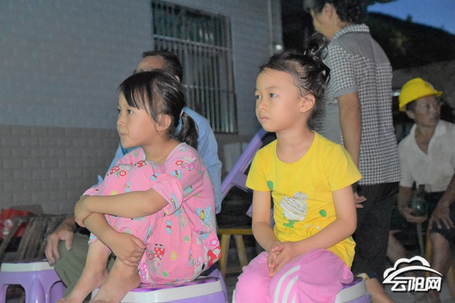 這里大多數(shù)都是老人、婦女、兒童,他們早早吃過晚飯后,端著凳子,拿著扇子,耐心地等待著電影放映的那一刻。