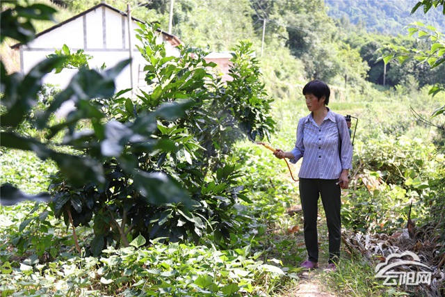 夏末初秋,在處處蔥蘢的玉帶村,聶代英家的柚園綠意盎然。一大早,她就背上水箱來(lái)到柚子樹前忙管護(hù),看到其中幾棵樹已結(jié)出碩大的果實(shí),她不禁喜上眉梢,“種三年了,今年掛了這么多果子,真好!”