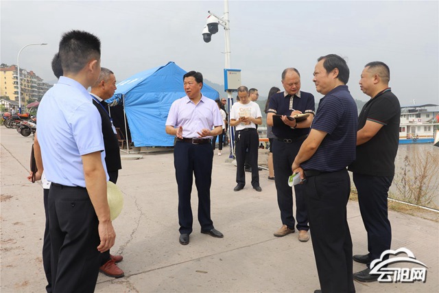 云陽網(wǎng)訊(實習(xí)生 王月園 文金月)8月20日,縣委常委、政法委書記羅啟輝率縣交通局、應(yīng)急管理局、云陽海事處等相關(guān)部門負(fù)責(zé)人,檢查長江5號洪峰過境云陽防汛工作。