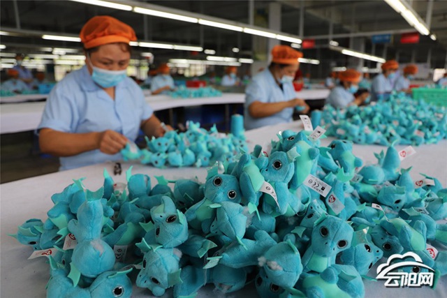 8月20日,在云陽(yáng)縣工業(yè)園區(qū)雄業(yè)玩具制衣有限公司,工人正在生產(chǎn)車(chē)間加工制作紡織類(lèi)玩具等。該公司主要生產(chǎn)紡織類(lèi)玩具、服裝和其它紡織品,今年解決了當(dāng)?shù)貏?wù)工人員560人,每月每人務(wù)工收入3000至4000元,有力帶動(dòng)了當(dāng)?shù)厝罕娒撠氃鍪?。(記?鄧?yán)?實(shí)習(xí)生 張?jiān)娾?攝)