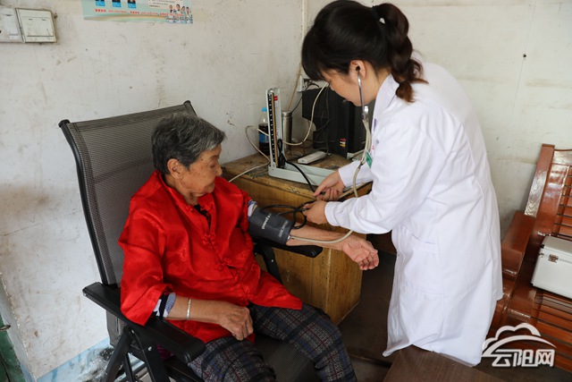 “最近天氣變化大,您身體有哪些不舒服?要記得按時(shí)服藥哈?!毕娜涨宄?,寶坪鎮(zhèn)雙壩村的一農(nóng)家院落里,一位女村醫(yī)正在給老人們測(cè)量血壓,做健康體檢,講解保健知識(shí),輕聲細(xì)語(yǔ)交談。