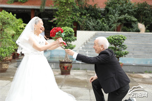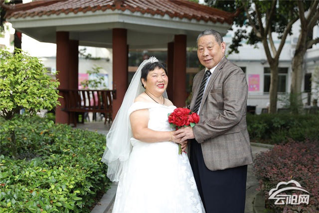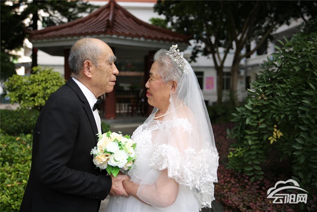 據(jù)了解,這6對老夫妻中,有的是兩人形影相伴的空巢老人,也有是失去唯一孩子的失獨老人。在時代的大背景下,老人們當(dāng)年結(jié)婚有的是父母之命、媒妁之言、也有的是青梅竹馬、自由戀愛。伍玉梅,喻吉現(xiàn)老人就屬于自由戀愛,兩人相識于沙市鐵廠,他們從相識,相知,相愛到進入婚姻生活用了1年的時間。時至今日,他們已經(jīng)走過了60個年頭。伍玉梅今年82歲,喻吉現(xiàn)今年也剛滿86歲。面對以后,伍玉梅表示只想陪著她的老頭子走完余生。福利院社工袁東瓊告訴記者,對于老年夫妻來說,在他們的一生中沒有穿過婚紗,也沒有拍過婚紗照,城鄉(xiāng)社會福利院組織此次活動想圓老人們一個婚紗夢。