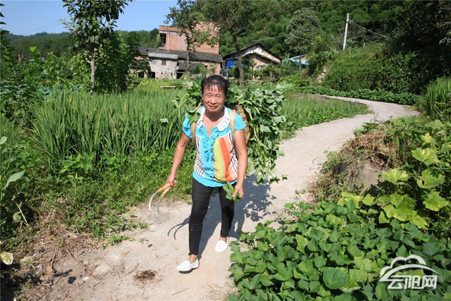 村道彎彎繞進(jìn)山,房前屋后農(nóng)戶忙。在南溪鎮(zhèn)青山村,一位身材瘦小的農(nóng)婦背著滿滿一背簍紅薯藤爬坡上坎,身后緊跟著一名男子,走路時(shí)一瘸一拐。盡管行動(dòng)不便,但他用雙手緊緊托住背簍底部,兩人一前一后往前走。農(nóng)婦時(shí)而回頭看看身后的男子,眼神溫柔而堅(jiān)定。