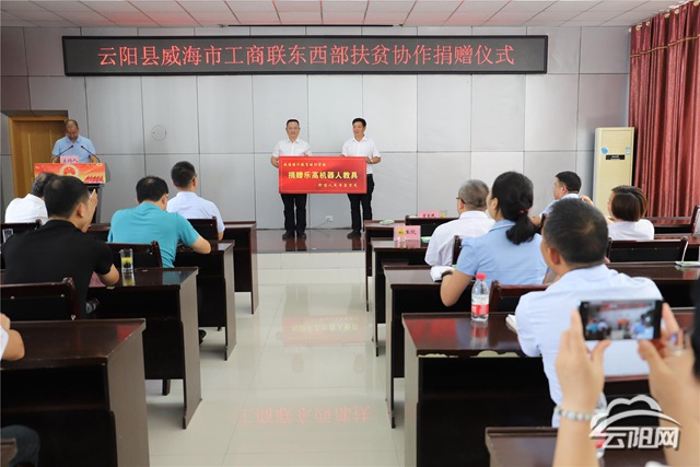 在威海市工商聯(lián)東西部扶貧協(xié)作捐贈儀式上,威海市工商聯(lián)分別向泥溪社區(qū)和石缸村捐贈現(xiàn)金2萬元、為泥溪小學(xué)捐贈價值1萬元的樂高機(jī)器人教具、泥溪鎮(zhèn)衛(wèi)生院捐贈價值1.35萬元的醫(yī)用病床3張。