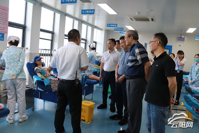 在云陽血漿站,陳鋼建一行詳細(xì)了解了血漿采集的全流程,查看了血漿站采漿區(qū)域、獻(xiàn)漿員登記流程,采漿機(jī)配置及使用等情況,詢問獻(xiàn)漿員獻(xiàn)漿感受,并對他們的愛心奉獻(xiàn)表示衷心感謝。