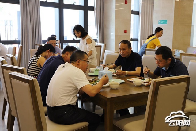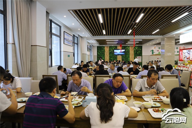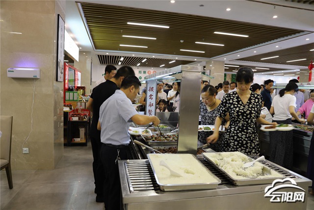 中午12點(diǎn),機(jī)關(guān)職工食堂內(nèi),前來就餐的職工有序打餐就餐,各類反對(duì)浪費(fèi)、節(jié)約糧食的宣傳標(biāo)語格外醒目。