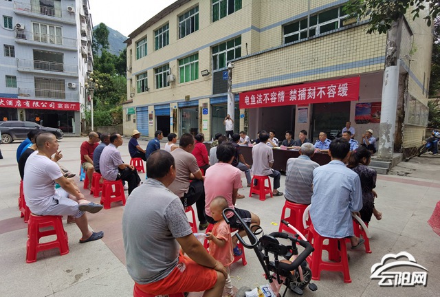 在沙市鎮(zhèn),工作人員向群眾發(fā)放了重慶市實施《中華人民共和國漁業(yè)法》辦法、云陽縣人民政府關(guān)于天然水域禁漁的通告等知識手冊。并現(xiàn)場為大家講解相關(guān)知識,對漁民進(jìn)行禁捕退捕宣傳教育,告知廣大漁民群眾禁捕時間、禁捕范圍、禁止事項、違禁處罰等。