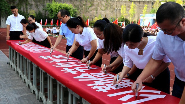 全體師生集體宣誓,學(xué)校教師代表和學(xué)生代表分別進(jìn)行了簽名,莊嚴(yán)承諾厲行節(jié)約、拒絕浪費(fèi)。