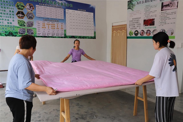 張紅斌說(shuō),今年受疫情影響,蠶繭的價(jià)格有所下降,對(duì)合作社的影響還是不小。在寶坪鎮(zhèn)政府的引導(dǎo)下,合作社實(shí)現(xiàn)轉(zhuǎn)型升級(jí),走上了蠶絲被深加工、銷(xiāo)售一體化發(fā)展之路。通過(guò)加工蠶絲被,合作社經(jīng)濟(jì)效益比原來(lái)增加兩倍以上,還將通過(guò)線上銷(xiāo)售等方式,進(jìn)一步擴(kuò)大銷(xiāo)路。