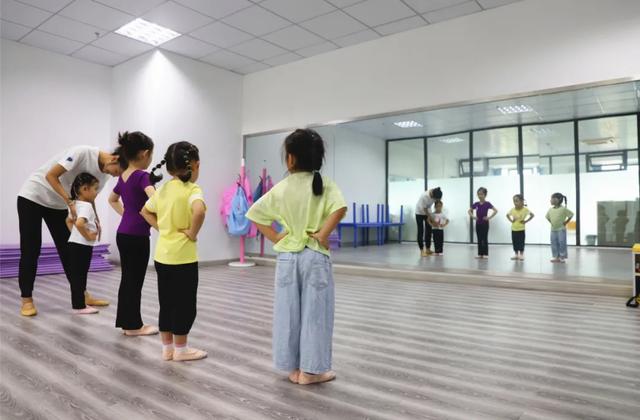 輔導(dǎo)老師手把手地糾正著小朋友的形體站姿