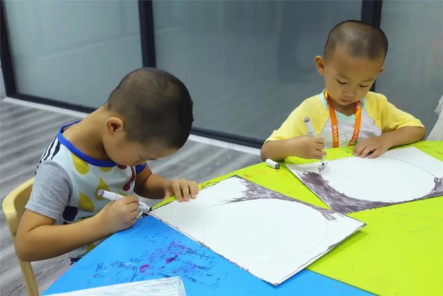 小朋友們專心致志地模仿著老師畫出來的荔枝