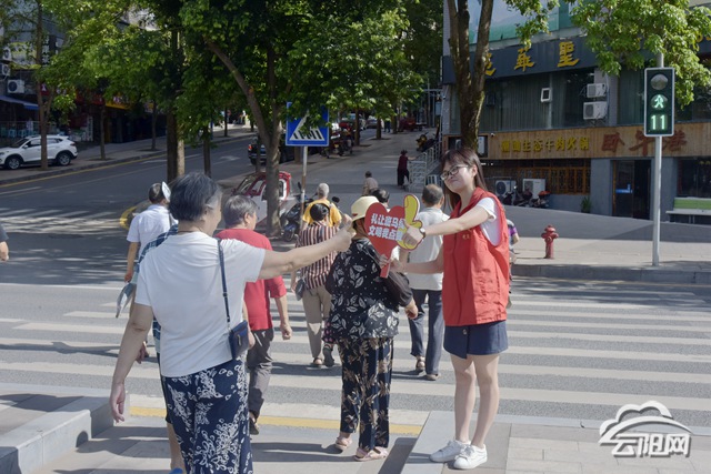 活動(dòng)中,10余名黨員老師以身作則,來到云陽縣清風(fēng)廣場等地開展文明交通勸導(dǎo)志愿服務(wù)活動(dòng)。志愿者每四人一組,身穿統(tǒng)一黨員志愿者馬甲、手持交通引導(dǎo)小紅旗、文明出行點(diǎn)贊牌等,在斑馬線開展現(xiàn)場勸導(dǎo)服務(wù)活動(dòng),提醒過往行人注意交通信號(hào)燈。對闖紅燈、不走斑馬線、翻越隔離欄等不文明交通行為進(jìn)行提醒和勸阻,對老弱病殘?jiān)械忍厥馊巳哼^馬路提供幫助,對過往行人進(jìn)行交通安全知識(shí)宣傳。