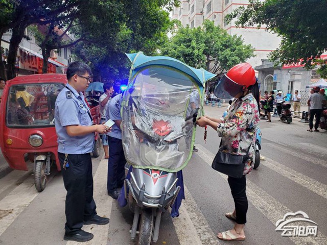 行動中,聯(lián)合小組分為兩個組,在場鎮(zhèn)車流量最大的兩個路段,設(shè)立流動檢查點,沒戴頭盔的、超載的現(xiàn)場整改,非法拼改裝的現(xiàn)場拆除,對查處的交通違法行為一律按照法律法規(guī)嚴格處罰。同時,為方便車主,綜合執(zhí)法大隊還邀請保險公司工作人員隨同檢查,現(xiàn)場演示車輛如何參保。