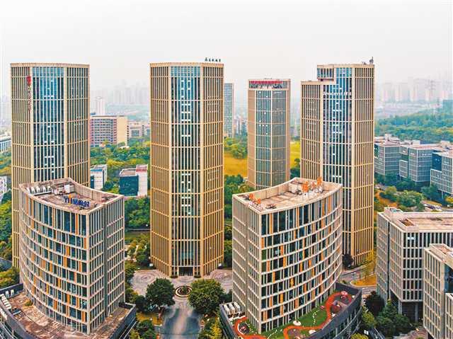 圖③:兩江新區(qū)互聯(lián)網產業(yè)園,豬八戒、易極付等企業(yè)都有嚴格的數字經濟安全管理程序為客戶服務。