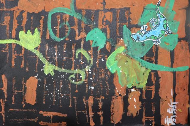 6歲的高新一創(chuàng)作的《捉迷藏的小壁虎》