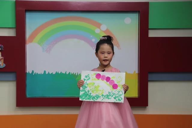 蒲思涵小朋友對著鏡頭介紹自己的美術(shù)作品