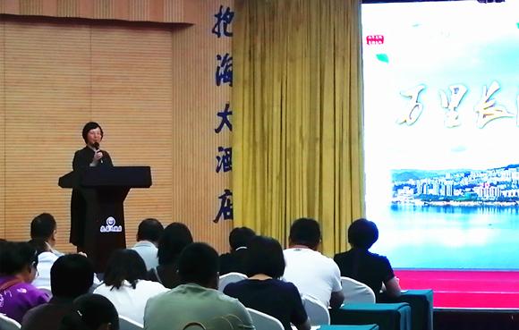威海市文化和旅游局副局長(zhǎng)張美麗在推介會(huì)上講話(huà)。 通訊員 黃一泓 攝 華龍網(wǎng)發(fā)