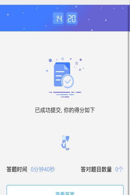 答題完成后,點擊提交答案,系統(tǒng)自動顯示答題分數(shù)、答題時間、答對題目數(shù)量、查看答案、查看排行等。