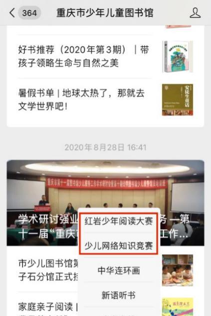 關(guān)注“重慶市少年兒童圖書館”微信公眾號,點擊“活動”——“紅巖少年閱讀大賽”