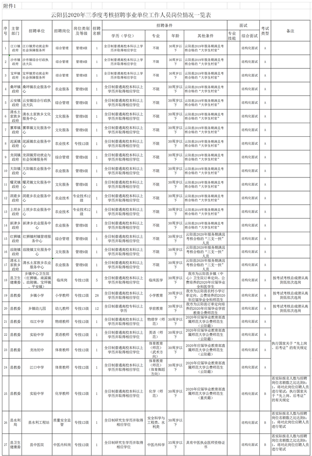 各崗位具體單位將于2020年9月30日前在云陽縣人民政府公眾信息網(wǎng)站上公布,同時公布選崗時間及地點等事項。逾期未到者,不再進入本次招聘后續(xù)環(huán)節(jié)。