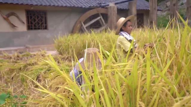游客與農(nóng)民一起歡唱,慶豐收,共享農(nóng)家樂