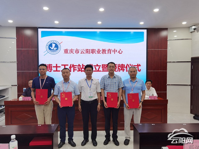 重慶市職業(yè)教育學(xué)會(huì)會(huì)長張榮宣布中職學(xué)校服務(wù)鄉(xiāng)村振興區(qū)域協(xié)同創(chuàng)新聯(lián)盟正式成立,并為渝東北鄉(xiāng)村振興技術(shù)技能人才培養(yǎng)研究中心授牌;儀式上還為云陽職教中心博士工作站授牌并為受聘博士頒發(fā)聘書。