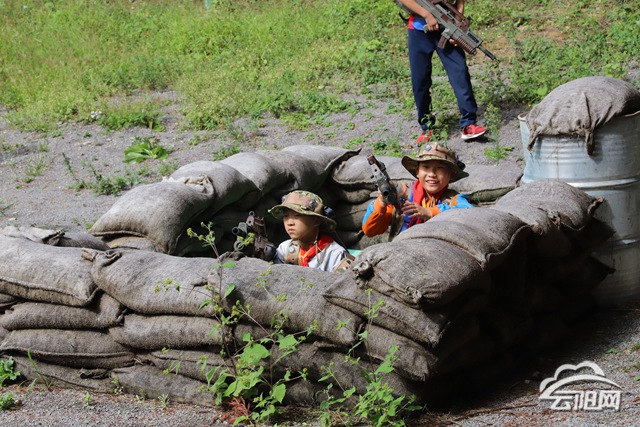 “埋伏!前方有敵軍出沒!”紅方小朋友趴伏在沙包巖體背后,雙手緊握“高端武器”,瞇著眼睛,趕緊對著“敵人”的頭盔、迷彩服上的“靶子”瞄準(zhǔn),扣動(dòng)扳機(jī)……游戲結(jié)束,獲勝的小朋友李曉葒高興地說:“這次研學(xué)活動(dòng)游戲中,我學(xué)會(huì)了團(tuán)結(jié)協(xié)作,體會(huì)到了團(tuán)結(jié)的力量?!?/p>