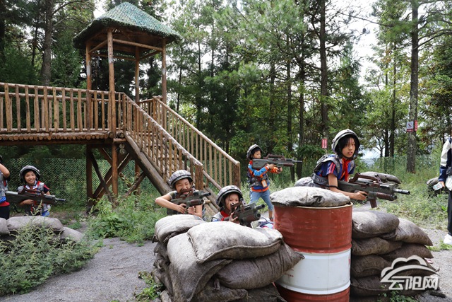 來到岐山草場真人CS游戲基地,小朋友們身穿“三級(jí)甲”,頭戴“三級(jí)頭”,手拿“M416”,分成兩隊(duì)協(xié)作對戰(zhàn),占領(lǐng)營地兩方高地。
