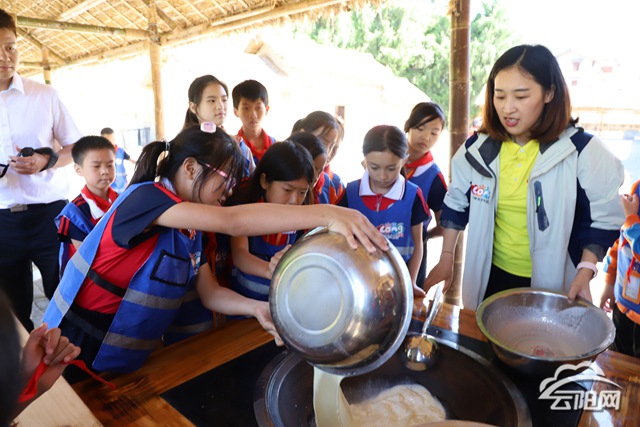 研學(xué)基地“豆子的秘密”研學(xué)項(xiàng)目引起孩子們的濃厚興趣?!拔抑蟮亩?jié){真香啊!”小朋友們圍著爐罩,眼睛緊緊盯著鍋中升騰的熱氣,排著長隊(duì)耐心等待豆?jié){出鍋?!笆止ざ够?、豆腐真好吃!”在帶隊(duì)老師幫助下,小朋友們切身體驗(yàn)到了從磨黃豆、濾豆渣、煮豆?jié){、點(diǎn)豆花,最后制成白白嫩嫩豆腐的全過程,也感受到了勞動(dòng)的甘甜與艱辛。