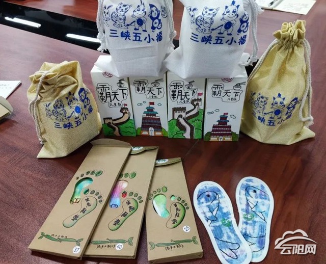 據(jù)介紹,文創(chuàng)旅游產(chǎn)品“三峽五小福伴手禮”是該校電子商務(wù)專業(yè)學(xué)生曾怡嘉、賀倩云、舒琴設(shè)計制作的。通過梳理本地民間文化、歷史文化,借助在平面設(shè)計課上學(xué)到的知識,創(chuàng)作出“三峽五小福”形象,并做成書簽、便利貼、布袋、商品包裝盒。同時,整合三峽地區(qū)的農(nóng)特產(chǎn)品桃片糕、菊花、紅薯干,設(shè)計制作出了一個具有濃郁三峽文化特色的文創(chuàng)旅游產(chǎn)品——伴手禮。