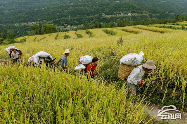 云陽(yáng)網(wǎng)訊(實(shí)習(xí)生 張?jiān)娾?李歆宇)秋風(fēng)送爽,歲物豐成。9月22日,第三個(gè)中國(guó)農(nóng)民豐收節(jié)來(lái)臨,云陽(yáng)縣各地農(nóng)民搶收搶曬,確保水稻顆粒歸倉(cāng)。