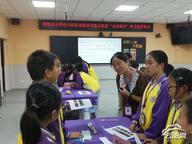 課后,云陽縣教科所9個學(xué)科教研員分別主持了現(xiàn)場微論壇活動。9位威海名師結(jié)合學(xué)科特點,作了“全科閱讀背景下的高效課堂建設(shè)”主題微講座,并與云陽縣“全科閱讀”首批種子教師進(jìn)行了互動交流。