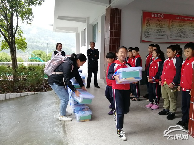 云陽(yáng)網(wǎng)訊(通訊員 袁得根)9月22日,秋分時(shí)雨,略感絲絲涼意,但擋不住云陽(yáng)縣梯城志愿服務(wù)中心志愿者們及南溪鎮(zhèn)政府工作人員傳遞“愛”的腳步。他們一行5人,冒著秋雨,來(lái)到青山小學(xué),為貧困山區(qū)的孩子送去兒童安全健康守護(hù)包。