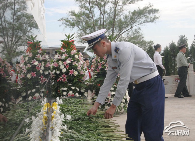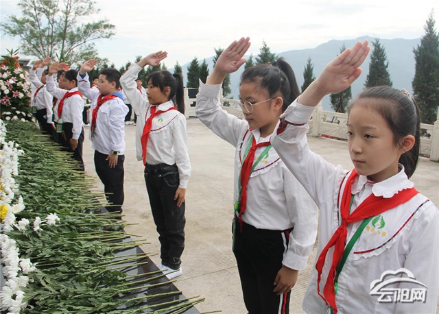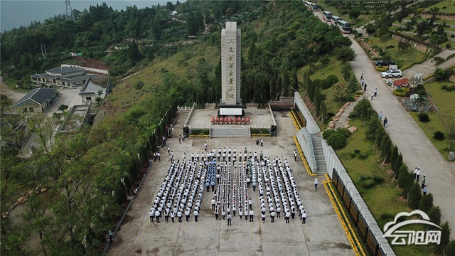 烈士陵園內(nèi),松柏長(zhǎng)青,氣氛肅穆。革命烈士紀(jì)念碑巍然聳立,正中央“人民英雄永垂不朽”八個(gè)大字,熠熠生輝。紀(jì)念碑前,600多名社會(huì)各界代表手持鮮花,列隊(duì)肅立。隊(duì)列之前,以中共云陽(yáng)縣委、縣人大常委會(huì)、縣人民政府、縣政協(xié),駐云各部隊(duì),各民主黨派、工商聯(lián)和無(wú)黨派人士,各人民團(tuán)體和各界群眾,軍烈屬和老戰(zhàn)士,全縣少先隊(duì)員名義敬獻(xiàn)的9個(gè)大型花籃一字排開(kāi),寄托著社會(huì)各界對(duì)英烈的深切緬懷。
