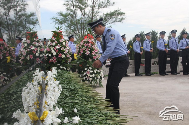 縣委常委、常務(wù)副縣長(zhǎng)劉曉云主持儀式。上午10時(shí),在深沉嘹亮的《烈士紀(jì)念日號(hào)角》聲中,向革命烈士敬獻(xiàn)花籃儀式正式開(kāi)始。全體人員齊聲高唱《中華人民共和國(guó)國(guó)歌》。