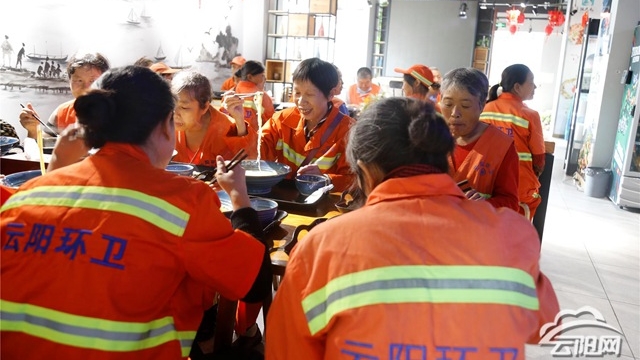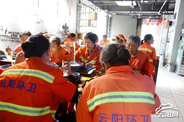 云陽網(wǎng)訊(記者 王彬彬 段斯斯)以面會友,歡度國慶。9月30日,縣委宣傳部、縣文旅委、縣商務委共同舉辦了“云陽面邀請城市美容師一起共慶國慶”活動?;顒佑伞霸脐柮妗泵骛^宴請環(huán)衛(wèi)工人同吃“國慶面”,以此倡導國慶新風俗,表達社會對環(huán)衛(wèi)工人的關注與愛。吃喜面是中國人自古就有的民族傳統(tǒng)。結婚、小孩滿月、老人慶壽、朋友賀新居要吃喜面,圖的就是個吉利、長長久久、一帆風順?!懊婧贸裕缘梦覀冃睦餆岷鹾?,滿滿的干勁兒?!薄俺試鴳c面為新中國慶生,祝福偉大祖國明天更美好。”活動現(xiàn)場,環(huán)衛(wèi)工人們其樂融融。一筷子面條、一口熱湯,地道的云陽面味兒讓大家紛紛豎起了大拇指。