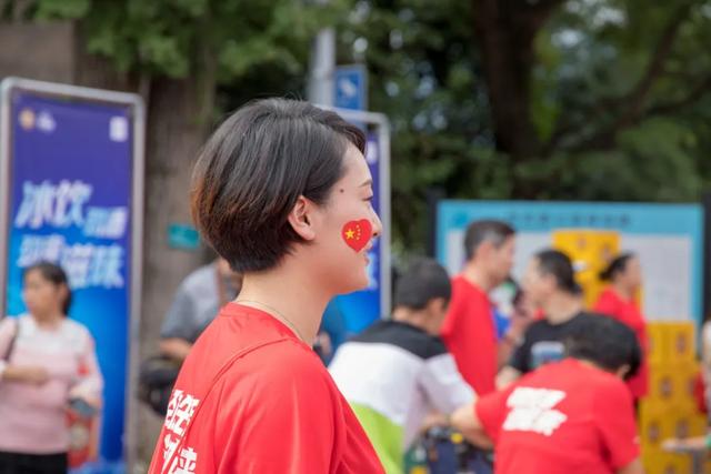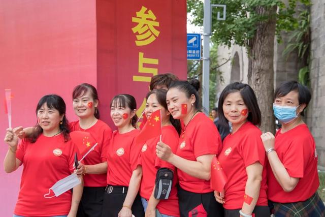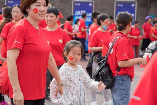 身穿統(tǒng)一的服裝,手持五星紅旗