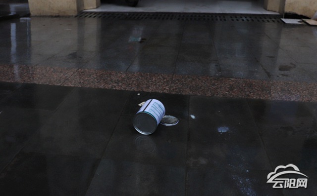 據(jù)該小區(qū)的目擊者介紹,當(dāng)天早上7點(diǎn)多鐘,一個(gè)鐵罐奶盒突然從小區(qū)2號(hào)樓高空拋下,只聽“砰”的一聲,砸在小區(qū)入戶口路面上。