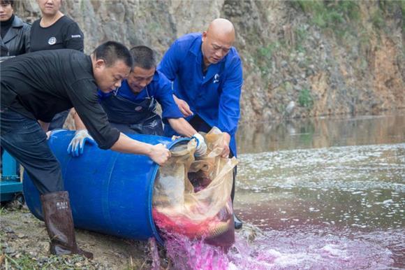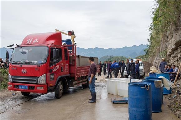 裝車魚苗到達(dá)清水湖。通訊員 譚啟云 攝