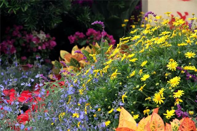 園內(nèi)鮮花五彩繽紛,游人絡(luò)繹不絕