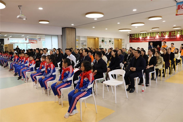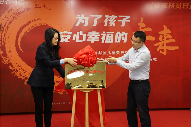 市政協(xié)常委、迪馬實(shí)業(yè)股份有限公司董事長羅韶穎和縣委常委、組織部部長李學(xué)義共同為 “迪馬泥溪兒童關(guān)愛中心”揭牌。