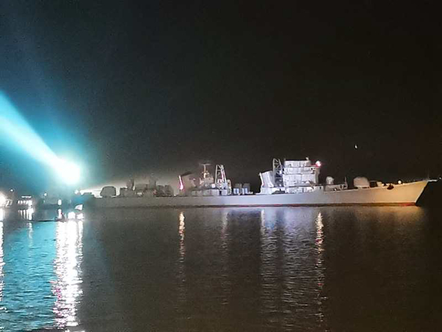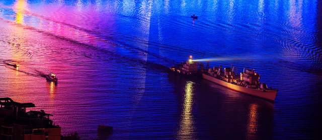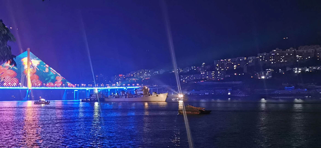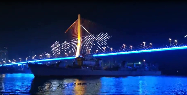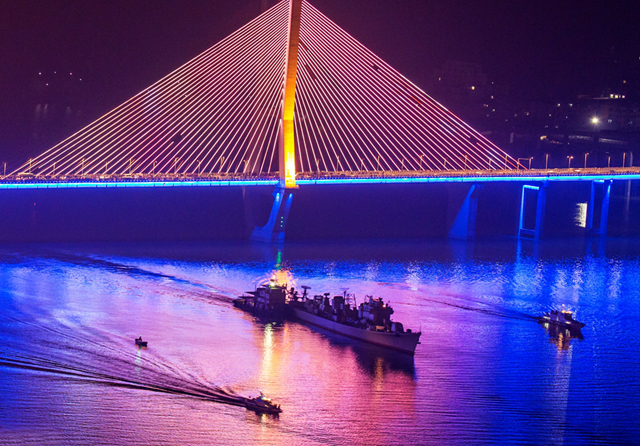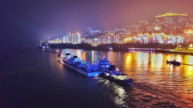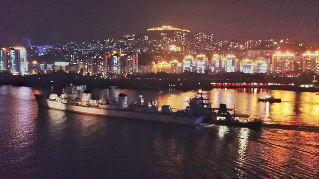 10月18日21時18分,珠海號驅(qū)逐艦過境云陽。