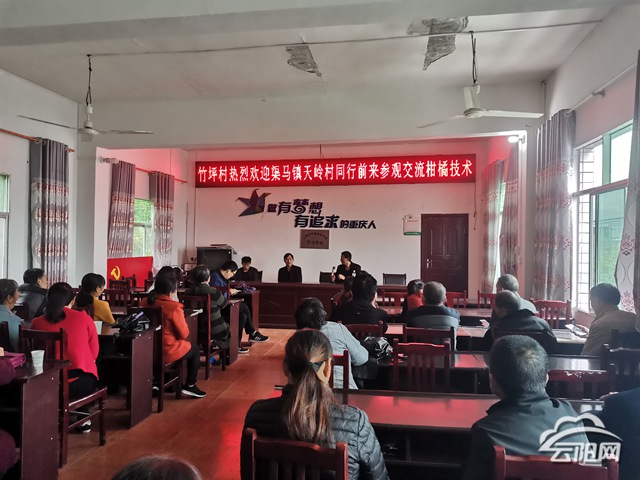 云陽(yáng)網(wǎng)訊(通訊員 唐嶼)為了加強(qiáng)片區(qū)柑橘企業(yè)之間的交流與學(xué)習(xí),增進(jìn)我鎮(zhèn)柑橘種植技術(shù),提升行業(yè)整體水平,近日,渠馬鎮(zhèn)天嶺村一行多人赴雙龍鎮(zhèn)竹坪村學(xué)習(xí)觀摩,交流柑橘種植技術(shù)。