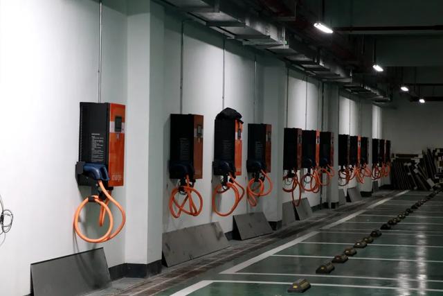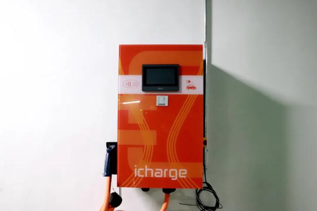 只見一排身材“嬌小”的壁掛式充電樁掛在墻上。