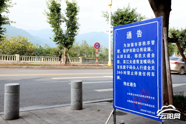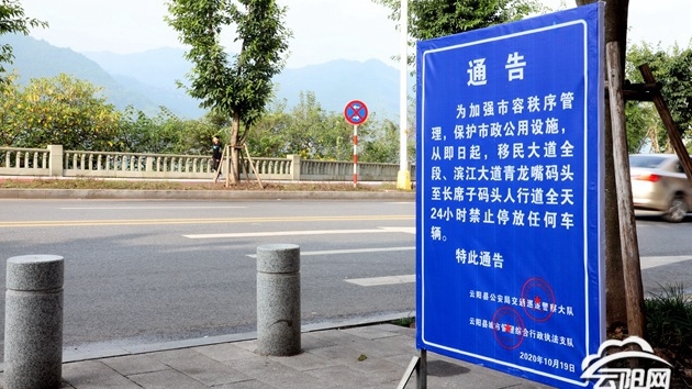 據(jù)悉,為加強(qiáng)市容秩序管理,保護(hù)市政公用設(shè)施,縣交通巡邏警察大隊和縣城市管理綜合行政執(zhí)法支隊在近日也特發(fā)通告稱:從2020年10月19日起,移民大道全段、濱江大道青龍嘴碼頭至長席子碼頭人行道全天24小時禁停放任何車輛。
