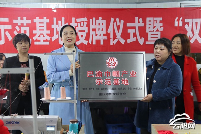 當(dāng)天,縣婦聯(lián)負(fù)責(zé)人為巴渝巾幗產(chǎn)業(yè)示范基地進(jìn)行了授牌。