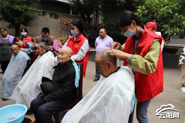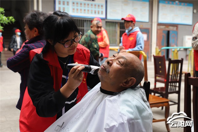 活動中,志愿者們?yōu)轲B(yǎng)老院全體老人獻(xiàn)上了唱歌、舞蹈、朗誦等豐富多彩的文藝節(jié)目,老人們一邊曬著暖陽,一邊欣賞表演,一個個樂得合不攏嘴,臉上洋溢著幸福的笑容。隨后,志愿者們兵分兩路,一些志愿者走進(jìn)老人房間,幫他們整理床鋪,打掃衛(wèi)生,與臥床的老人談心,聽他們講述了屬于他們年代的故事,老人臉上都掛著淺淺的微笑。另一些志愿者則為老人洗頭,協(xié)助理發(fā)師幫老人理發(fā)、剃胡子、捶肩捏腿等。大家手藝嫻熟,耐心傾聽老人對發(fā)型的要求,老人修剪頭發(fā)后都精神抖擻,笑容滿面,周到貼心的服務(wù)贏得了老人們的一致好評?!敖裉炀蠢显菏譄狒[,志愿者為我們表演節(jié)目、理發(fā),還走進(jìn)房間做清潔,大家伙都非常開心,這些服務(wù)都是給老人們滿滿的愛?!笔┚慈先苏f道。