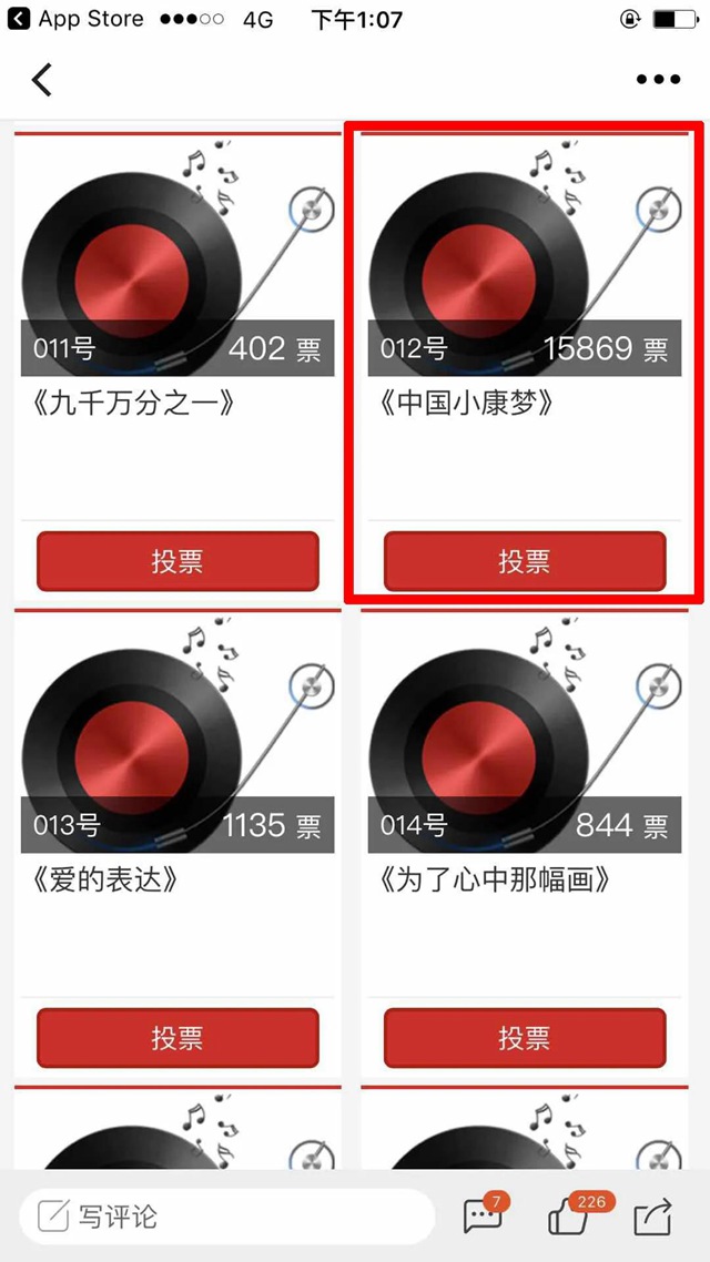 搜索點(diǎn)擊12號《中國小康夢》即可投票。